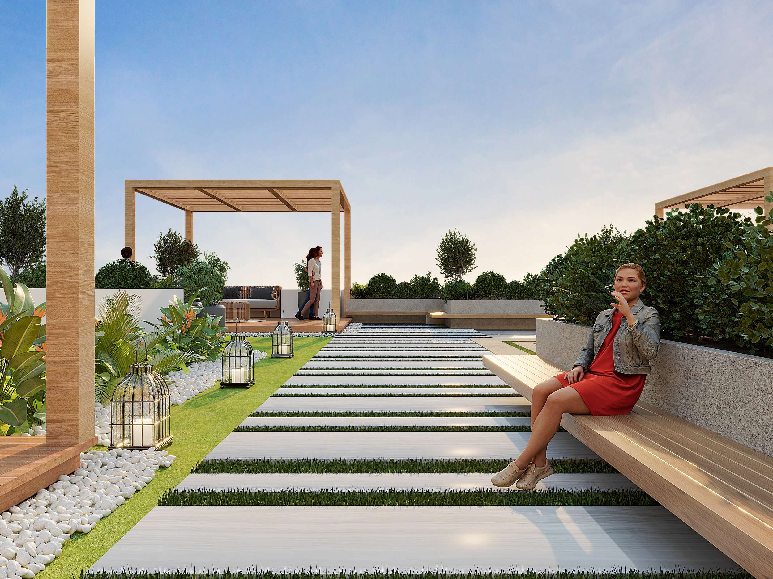 Relax and unwind in our Sky Lounge, offering panoramic views and a sophisticated gazebo seating for leisure and a fully functional gym for your fitness.